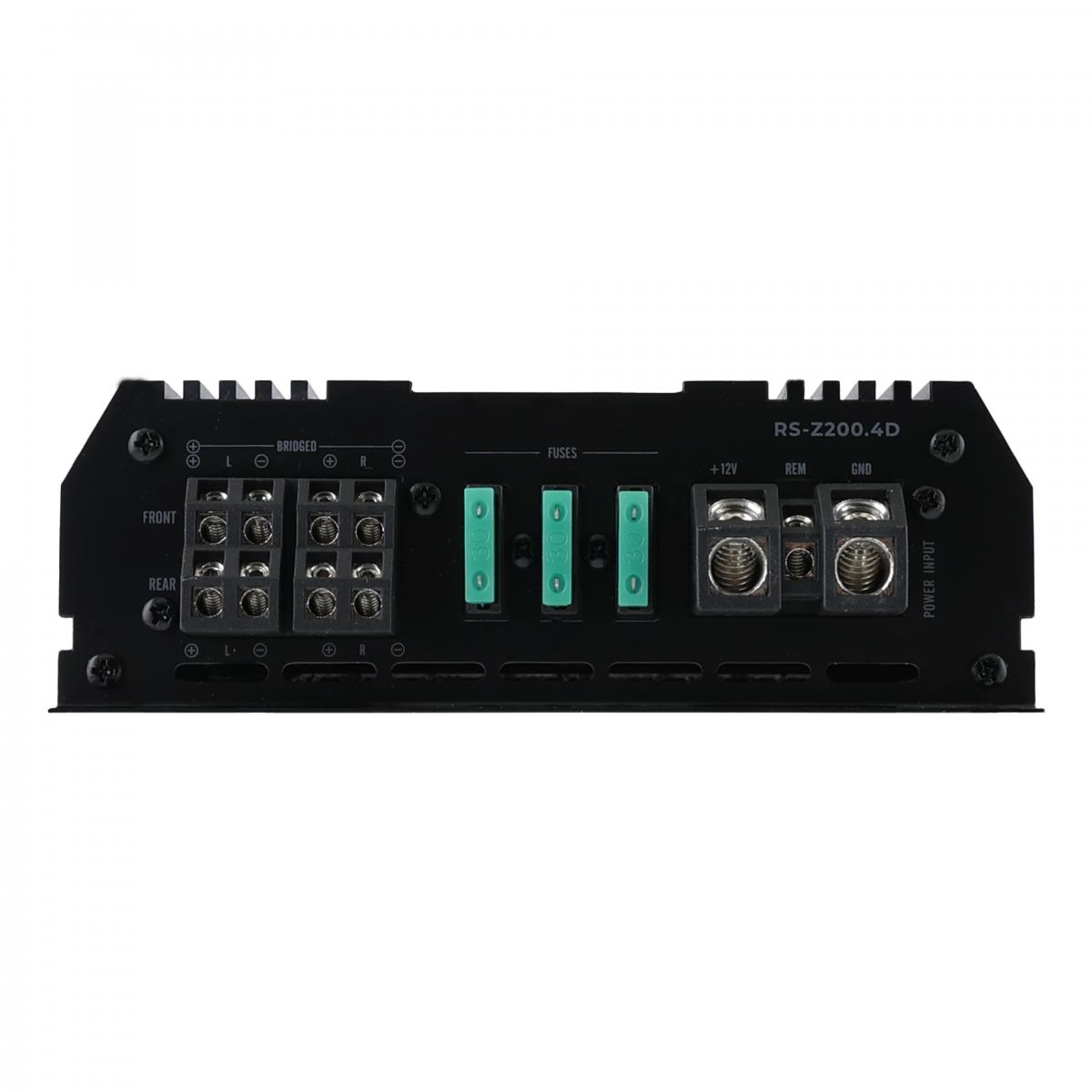 Amplificator 4 canale Reiss Audio RS-Z200.4D Class D 4x200W RMS, ideal pentru difuzoare performante și sisteme car audio puternice.