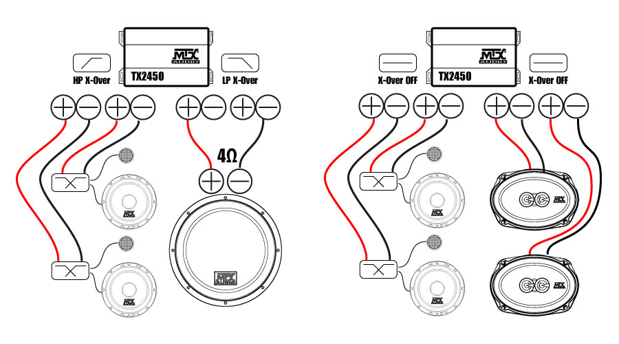 Calitatea sistemului dvs. va fi calitatea verigii slabe a sistemului. Trebuie să vă echilibrați sistemul cu difuzoare de calitate (MTX TR TX2 TX4), un amplificator muzical și dinamic fiabil (MTX TX2450), un subwoofer de calitate (MTX RTE12AS RTE12AV RTF10AS…) și o asamblare atentă.