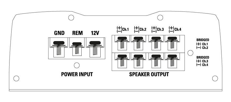 Pentru a evita problemele de interferență, am echipat TR450 cu intrări echilibrate. Acestea izolează perfect masa audio a amplificatorului, astfel încât să nu se amestece cu masa zgomotoasă a sursei de alimentare. Aceasta este o tehnică puternică care se găsește de obicei la amplificatoarele de înaltă performanță. Dacă sistemul stereo al mașinii nu are ieșiri RCA, puteți conecta TR450 la intrările de nivel înalt. Tot ce trebuie să faceți este să conectați cablurile HP direct la intrarea de nivel înalt a amplificatorului. Simplu și foarte practic. Dacă aveți nevoie, telecomanda MTX EBC-1 este disponibilă ca opțiune. Aceasta vă permite să reglați nivelul subwooferului cu un simplu buton analogic, stând pe scaunul din față.