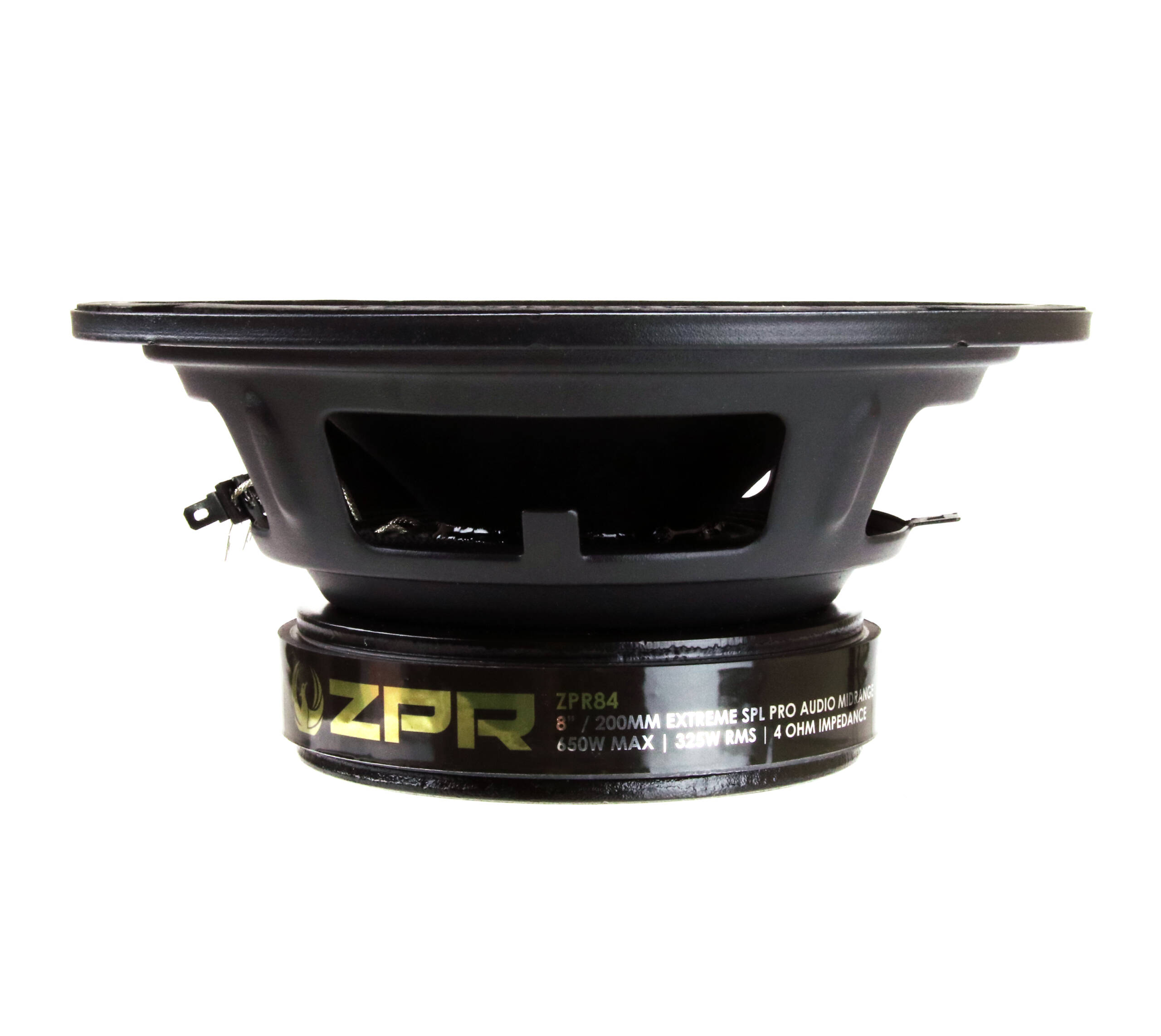 Midrange-urile ZPR84 sunt echipate cu o bobină vocală OFC de 2″ (50 mm) și un motor mare de ferrită de 32 oz, asigurând reproducere precisă și consecventă chiar și la niveluri ridicate de putere. Surround-ul dual-roll din pânză extinde răspunsul pe frecvențe joase, oferind un sunet mai cald și mai rotund, în timp ce membrana ușoară optimizează eficiența generală.