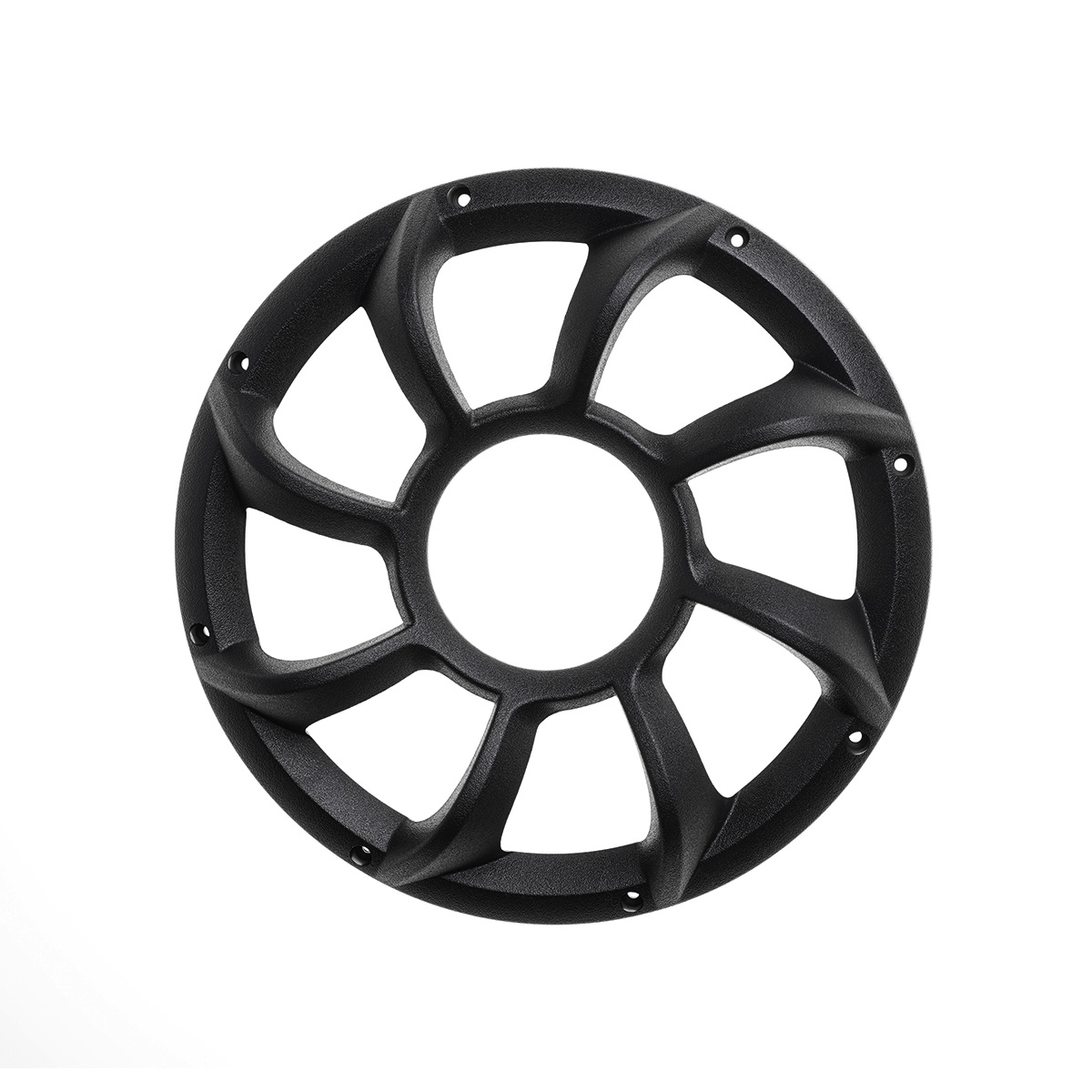 Capac pentru woofer din plastic ABS robust pentru woofer de 10,€³ cu tabla sau cosuri turnate, inaltime minima incinta: 285 mm, diametru exterior maxim Cos pentru woofer: 257 mm