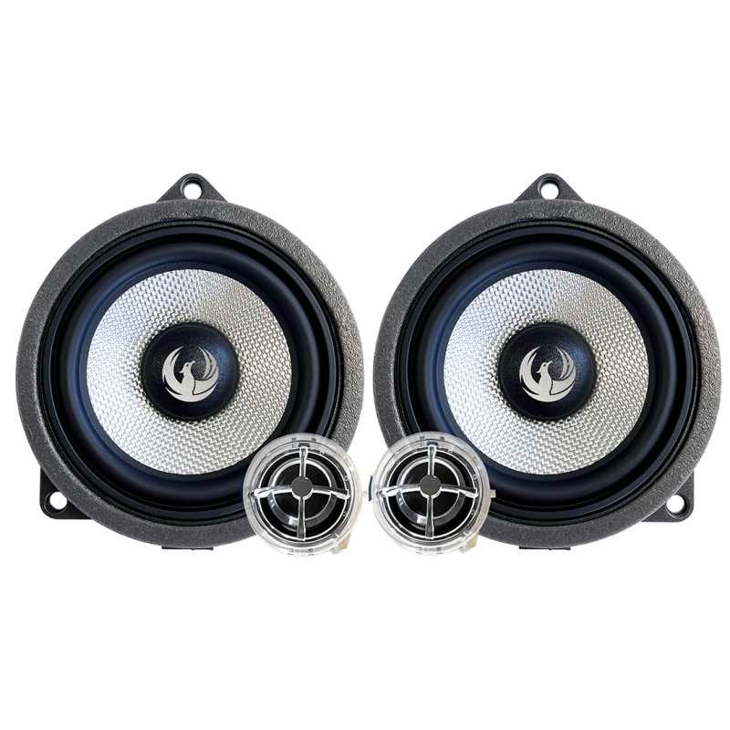 Kit Difuzoare pe 2 căi BMW 4” (100 mm) cu filtru și cabluri plug & play 60W RMS/120W MAX 4Ohm Phoenix Gold ZDSB100CS v2