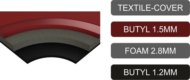 – butil: 1,5 mm