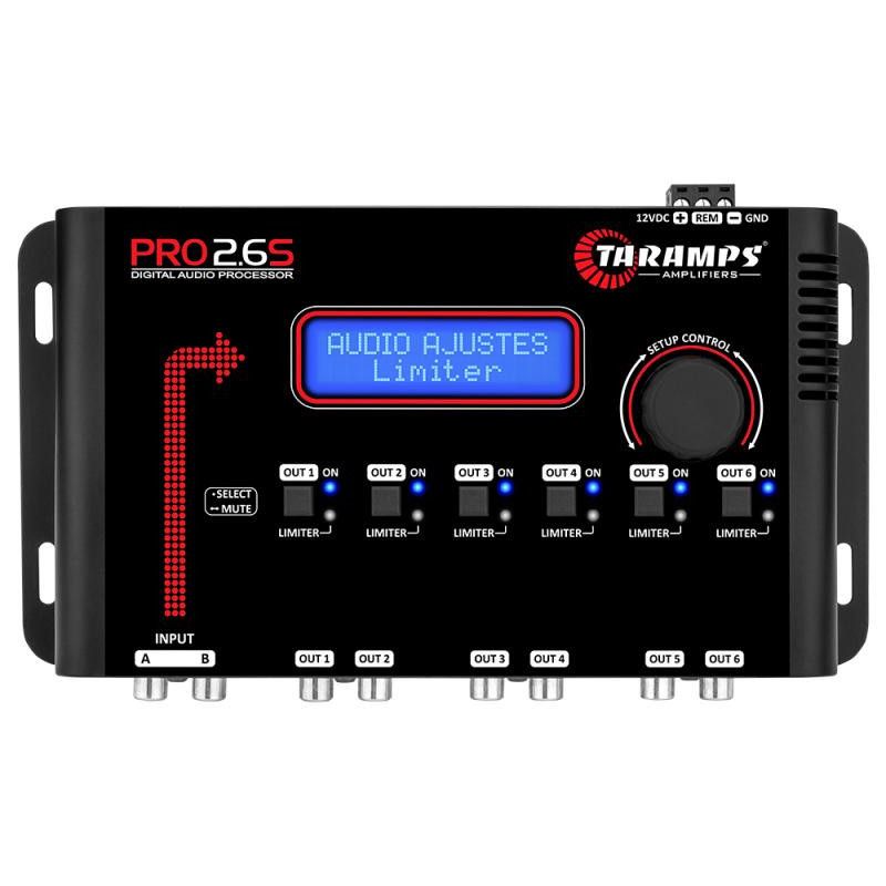 Dedicat mereu să-ți îmbunătățești experiența cu sistemul audio al mașinii, Taramps a inovat din nou prin producerea procesorului audio PRO2.6S. DSP, 2 intrări independente și 6 ieșiri, are caracteristici precum rutare, filtre crossover, reglare întârziere, aliniere, inversare de fază, limitator reglabil, egalizator parametric pe ieșiri, oglindire, mute, generator de unde sinusoidale și memorie pentru setări. Taramps, lucrează mereu pentru a vă face sistemul audio mai complet și mai ușor de manevrat.