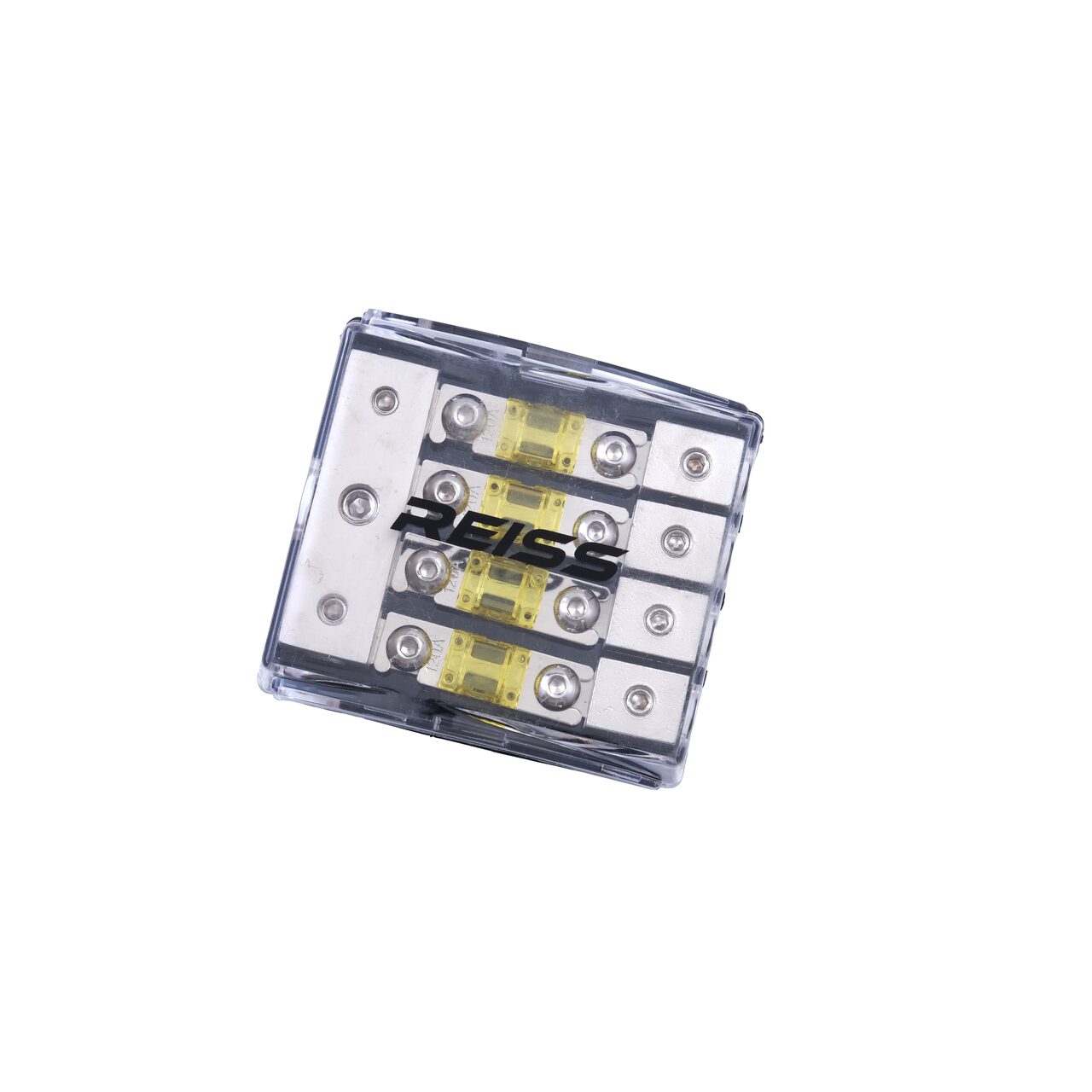 Distribuitorul cu sigurante Reiss RS-4AFS1 combina siguranta, flexibilitatea si durabilitatea intr-un singur dispozitiv compact si profesional. Cu sigurante integrate de 120A, carcasa transparenta si posibilitati multiple de conectare, RS-4AFS1 asigura protectie, fiabilitate si performanta maxima pentru toate echipamentele conectate, fiind alegerea ideala pentru pasionatii de car-audio si profesionistii care doresc un sistem ordonat si sigur.