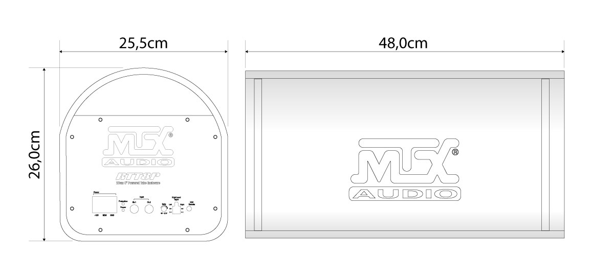 MTX TRT8P este o incintă cu tuburi ventilate, cu un subwoofer de 8″ cu diametrul de 20 cm și un amplificator clasa D de 120 W RMS.